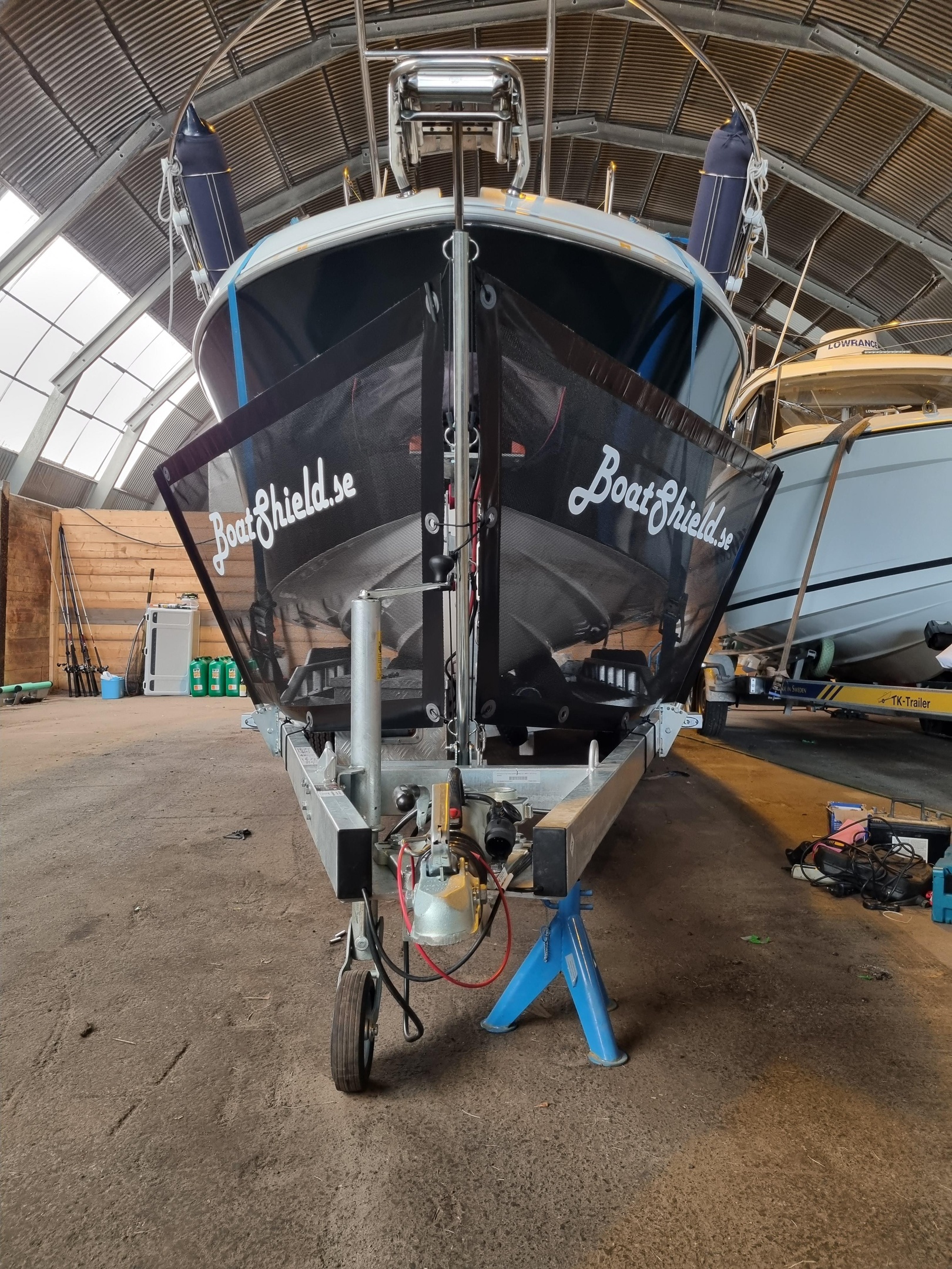 Skydda din ögonsten från både stenskott och vägsalt med Boat Shield. Marknadsledande skydd framtaget och tillverkat i Sverige. Monteras på trailern utan håltagning och passar de flesta trailer med delad dragstång. Flexible montering med justering av vinkel för att skydda flera olika typer av skrov/båtar. Kan även beställas med anpassat 1-färgstryck som t.ex. logotyper.